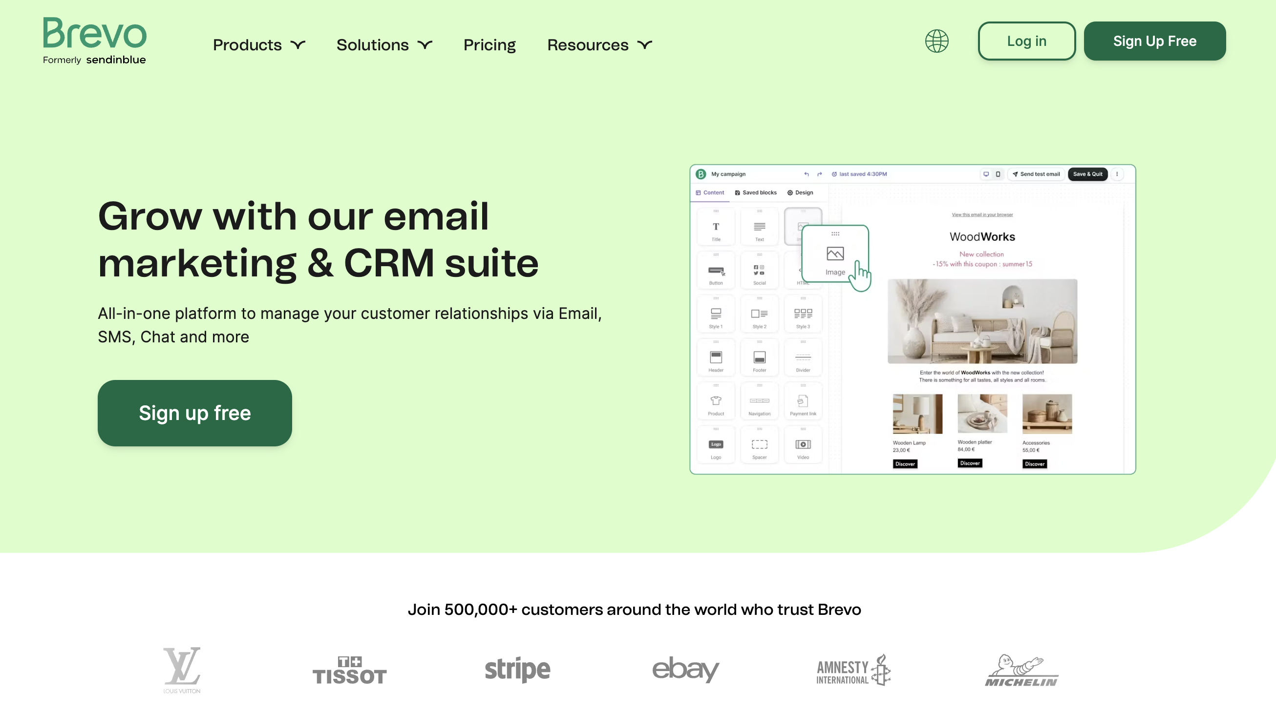 Beyond their email marketing tools, Brevo also includes a live chat tool, landing page builder, CRM, and integration with Facebook ads.