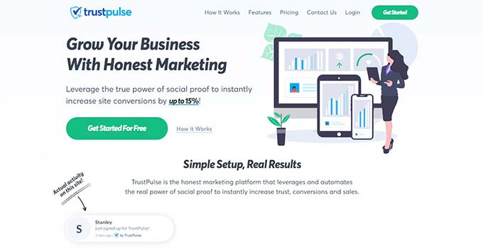 TrustPulse is the best WordPress plugin for social proof notifications. It’s a useful plugin to track and display your members’ activity in real-time. This plugin shows new sign-ups on your website to encourage visitors to become a member.