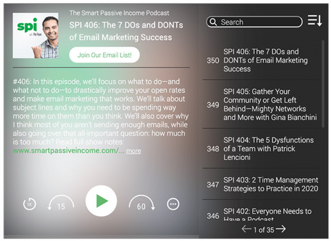 For example, Smart Passive Income is a podcast that is managed and run by Pat Flynn on his blog of the same name. It’s a weekly podcast that shares advice on how to build an online business the smart way.