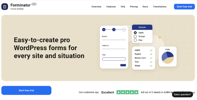 It lets you build simple forms like contact and registration forms. You can also use it to run interactive polls, quizzes, and calculations. It even lets you accept payments, donations, and down payments.