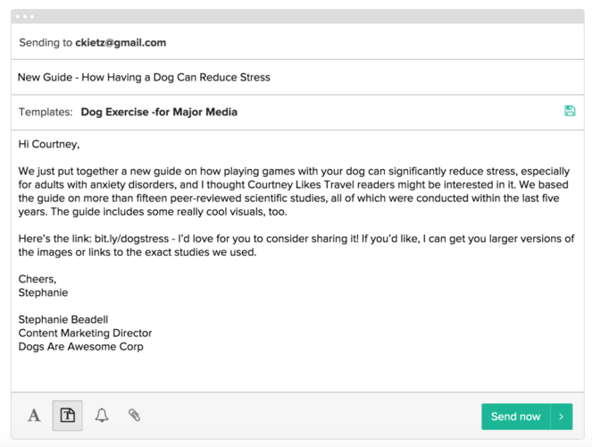With BuzzStream, you can also send personalized, targeted outreach emails to build professional connections in your niche.