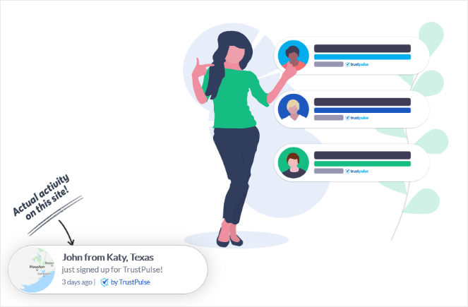 You can also use a tool like TrustPulse to easily boost your social proof. It allows you to display real-time social proof notifications on your website whenever someone takes an action like signing up for your newsletter or buying your ebook.