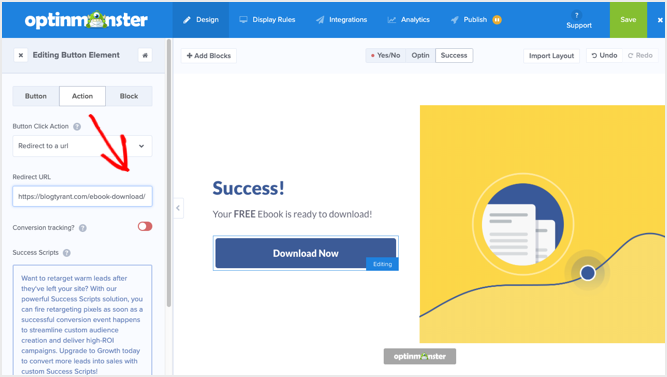 - Leverage OptinMonster success themes to confirm their subscription and deliver your ebook.
