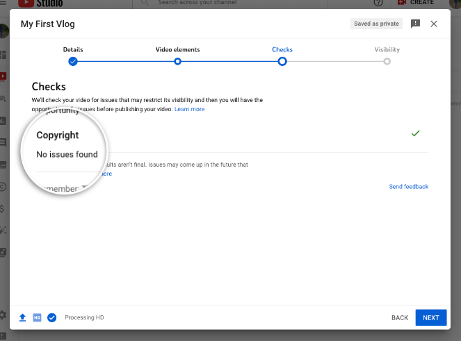 Once that’s done, YouTube will check for copyright issues and give you the chance to fix them before you publish your video.