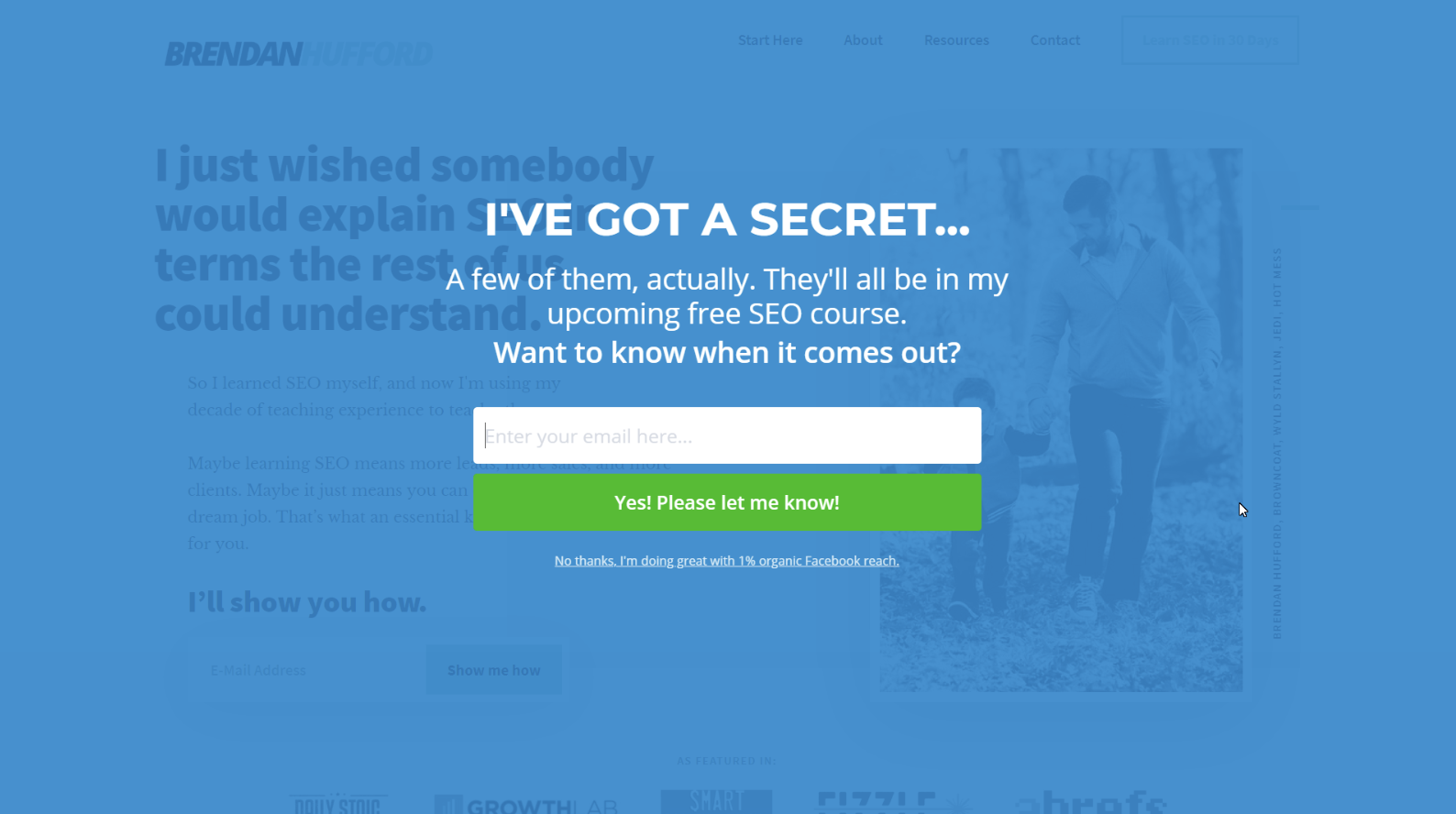 Email optin popup for conversions.
