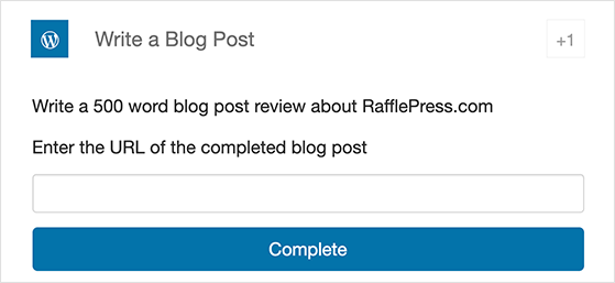RafflePress also comes with ready-made bonus actions, including the ‘Write a Blog Post’ action.