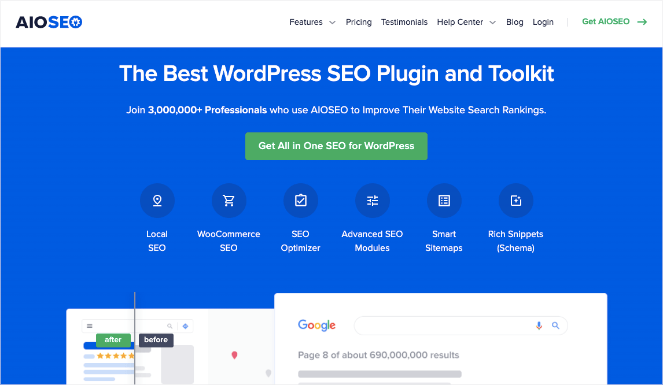 All in One SEO (AIOSEO) is one of the best SEO plugins for WordPress. It’s used by over 3 million website owners to optimize their sites for search engines, boost their rankings, and drive more traffic.