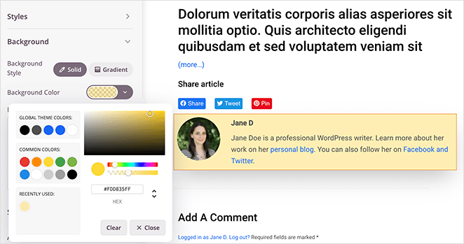 With just a few clicks, you can change the author box’s background color, background style, name color, biography typography, font color, border style, and more.