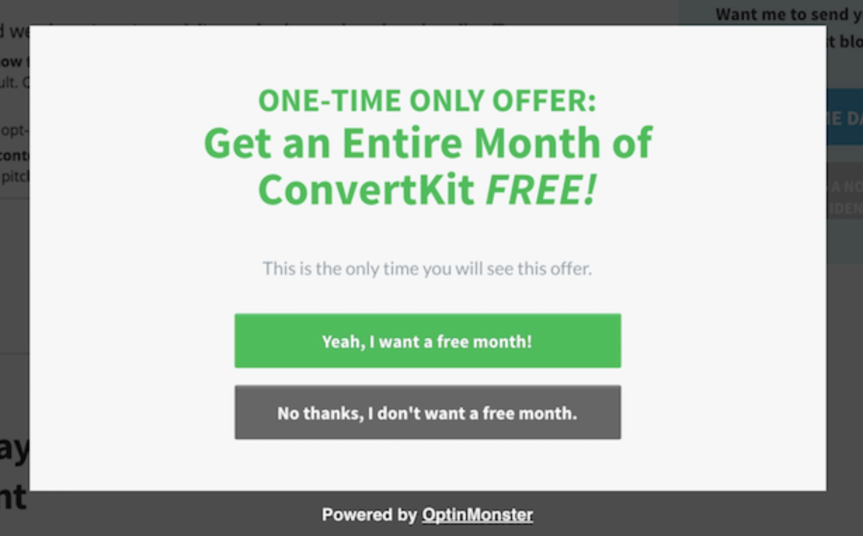 This is a great example of a Yes/No popup because it makes the benefits and consequences of each click very clear.
