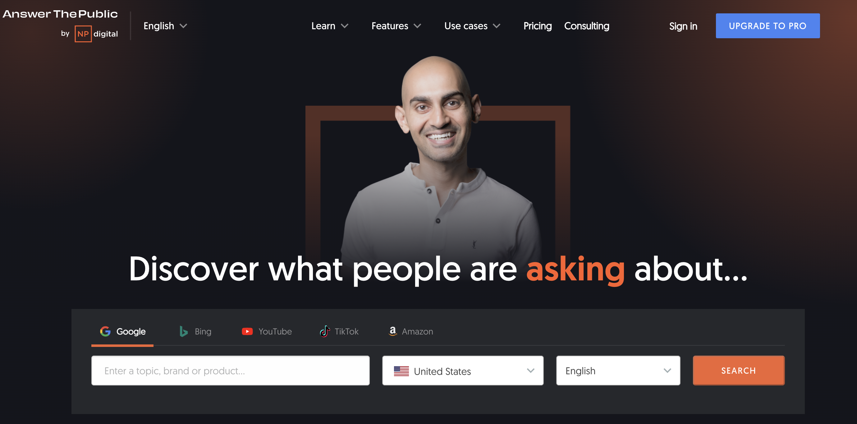 • Answer The Public – Access content ideas from lists of questions relating to your topic that people are already searching for online.