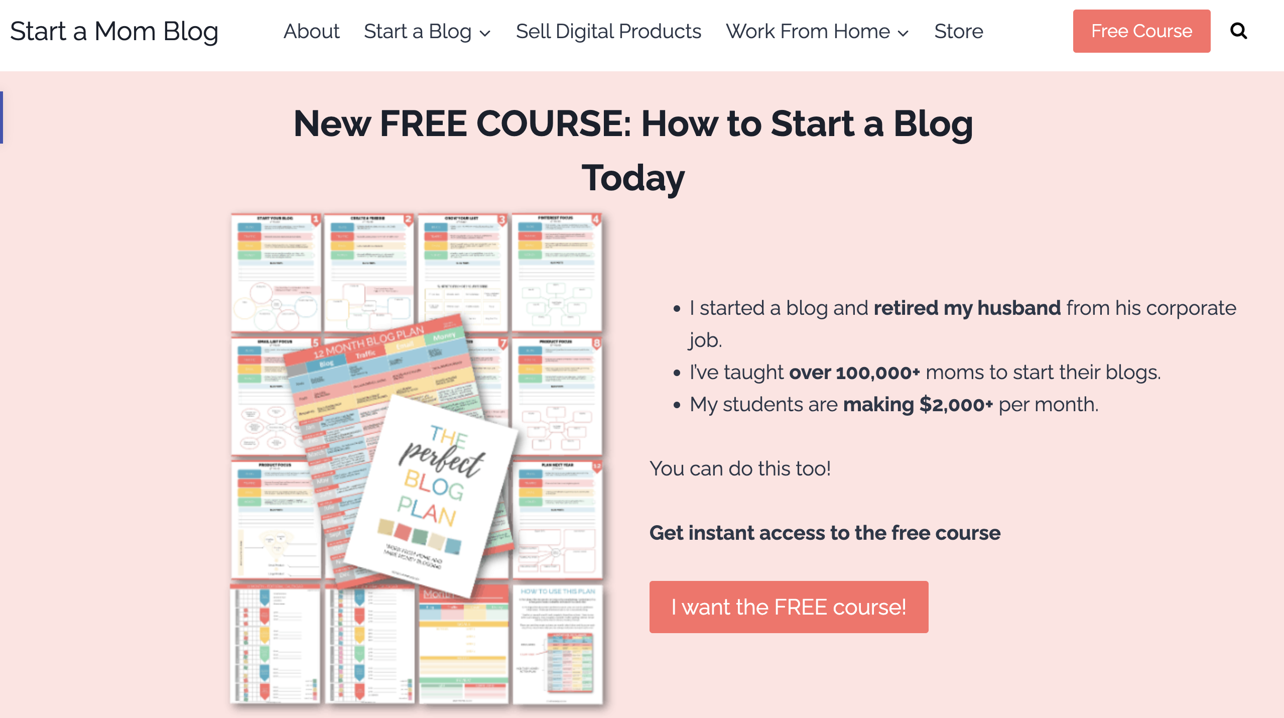 Start a Mom Blog’s primary source of income is affiliate income and the courses it sells online.