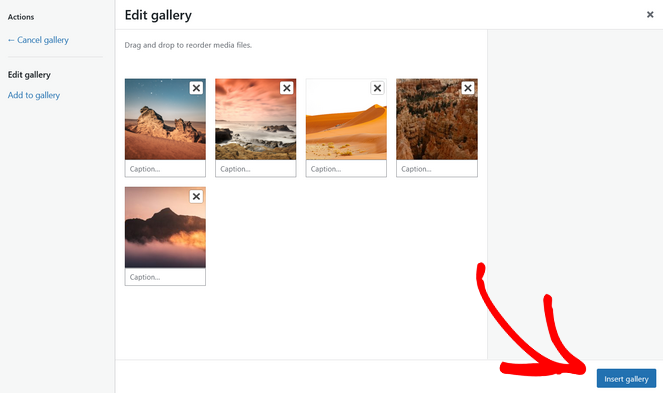 Now, you can rearrange your photos if you want by dragging and dropping them into your desired order. When you’re happy, click Insert Gallery.