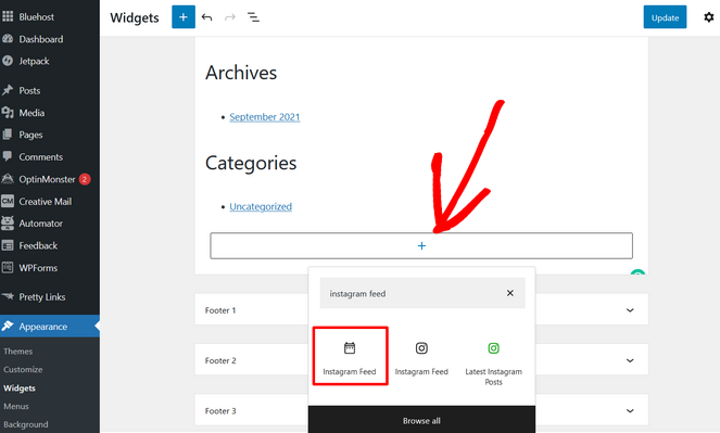 Search for the Instagram Feed widget and click on it to add it to your sidebar.