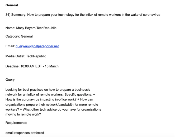 You can reply with your story and information when you see a question relevant to your niche or industry. If the journalist or media outlet decides to use your story, they’ll publish it on their website with a link back to your blog. This drives their traffic to your site and helps you organically build backlinks and authority in your niche.